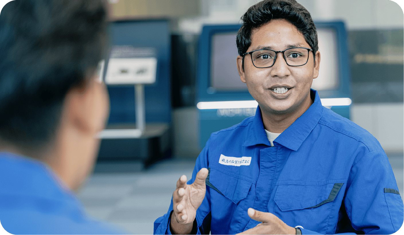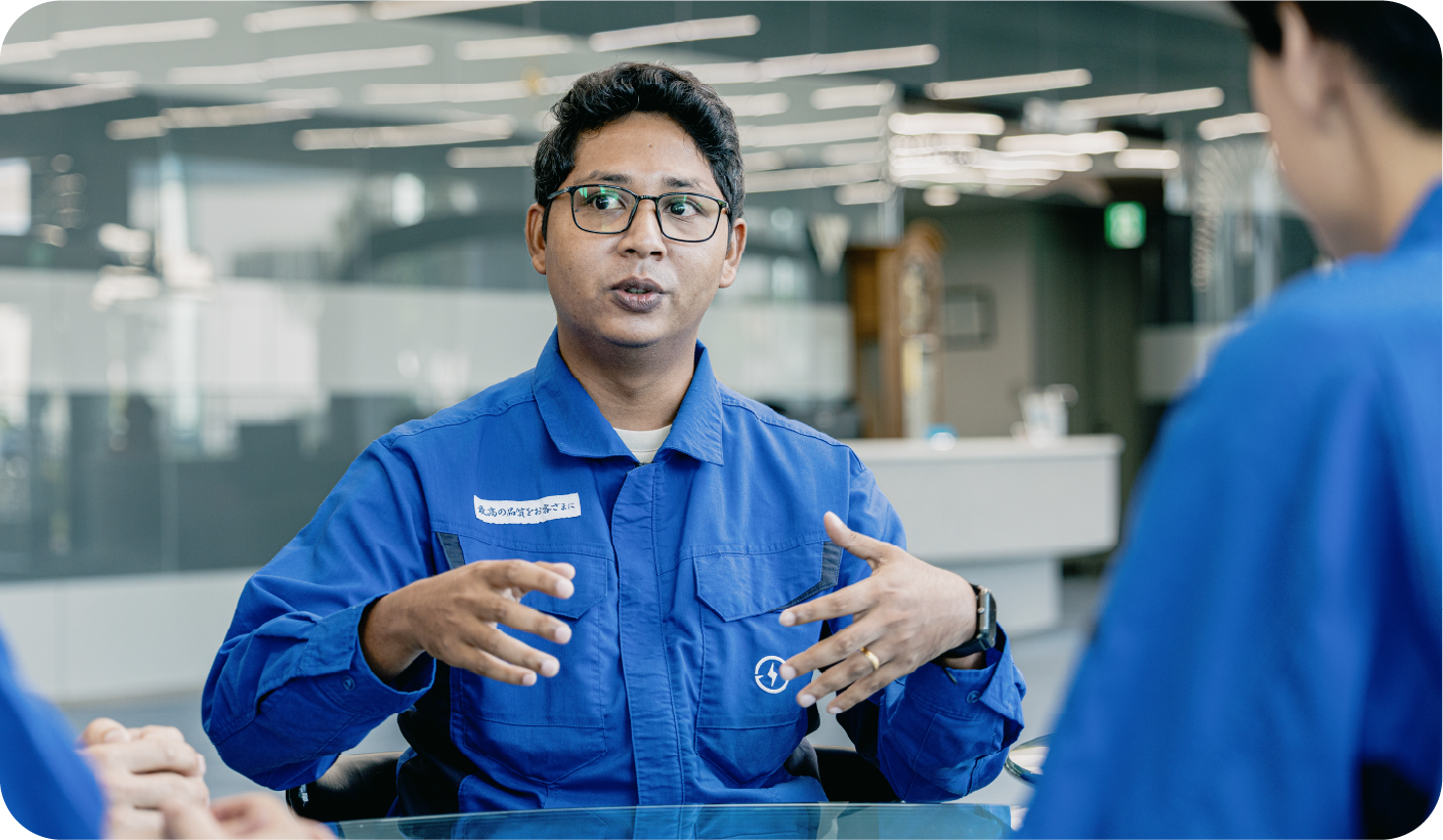 強みでいくと、現場での技術者との距離が近いのも、愛知電機のいいところだと思います。相談もしやすいし、実際に"人の声が届く"会社です。海外出身の自分でも、働きやすい雰囲気がある。困っているとき、誰かが必ず声をかけてくれるんです。