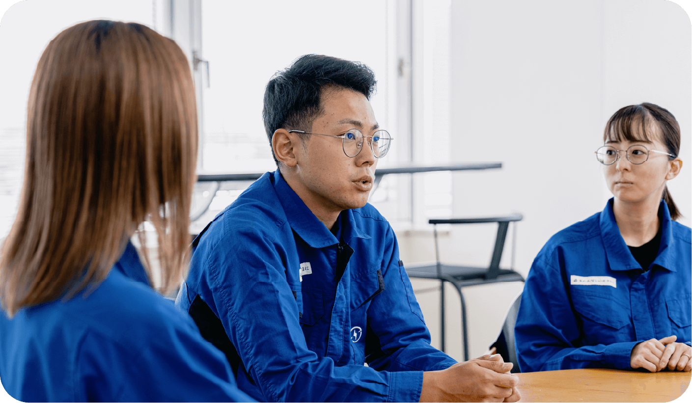 僕も同じです。全然違う分野の研究をしていたんだけど、面接の時の話を聞いて、愛知電機なら"やる気さえあれば挑戦できる環境がある"と思ったんです。結果、本当にそうだったと感じています。