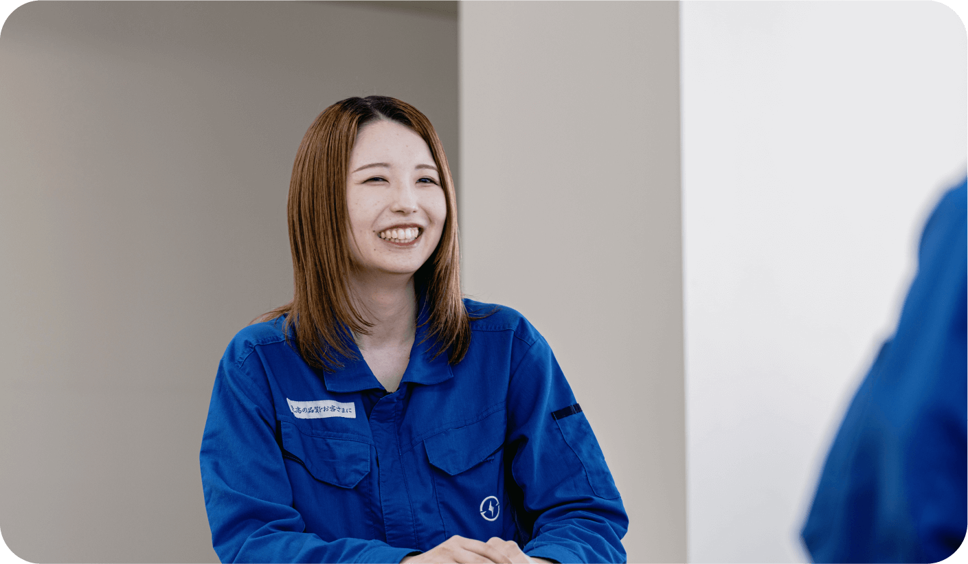 私は化学専攻出身なんですけど、就活は"ものづくりがしたい"の一心で。でも、他社の面接では「なんで化学から?」って不安がられることが多かったんです。でも、愛知電機だけは「化学出身の先輩もいるし大丈夫だよ」と言ってくれて、ここなら挑戦できる!と思えたんですよね。